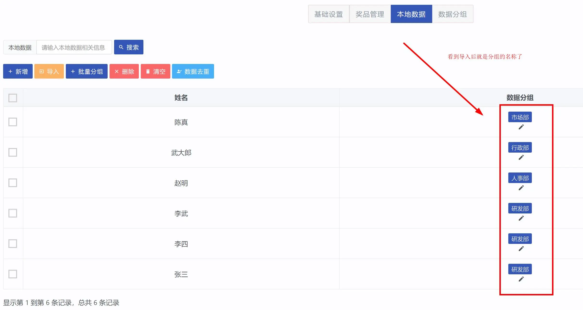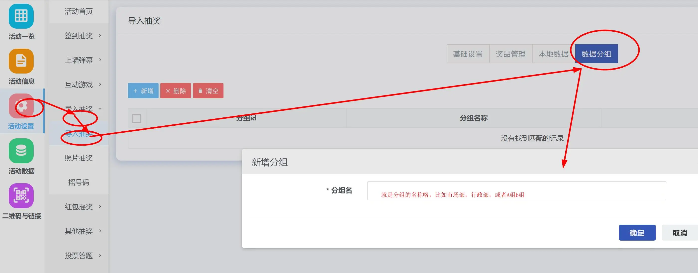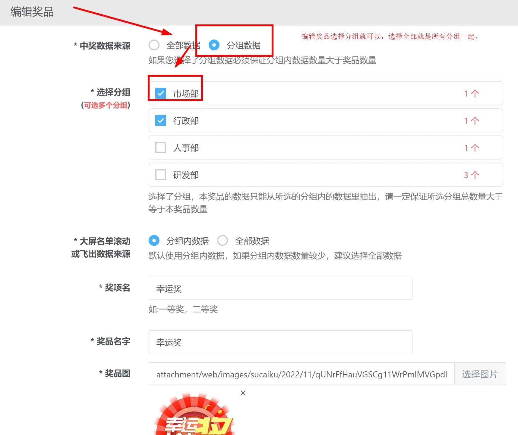 有些场景需要不同的人参与不同奖品,或者新员工不参与特等奖等,使用分组可以实现