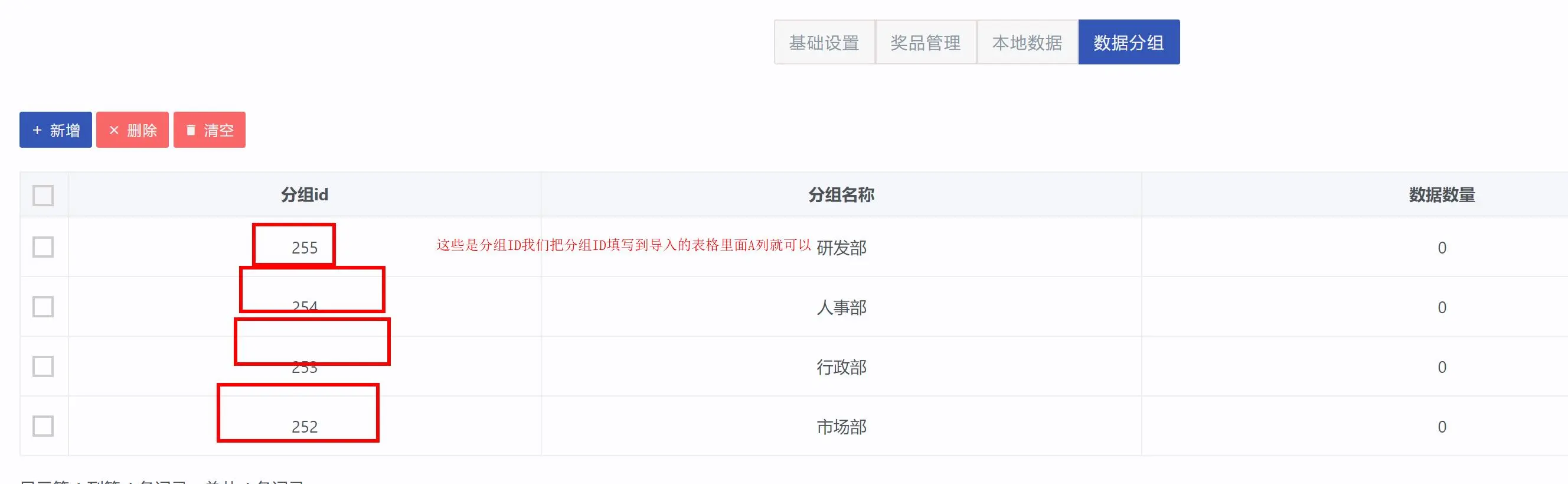 添加好分组后,我们看到下面分组ID数字,这就是我们要导入表里面的id