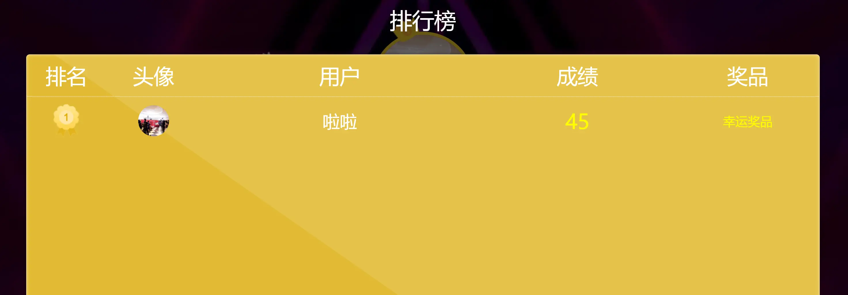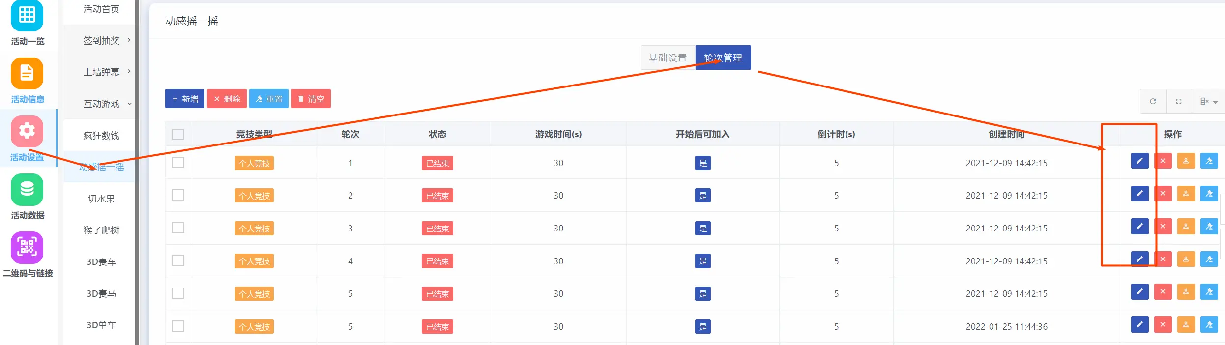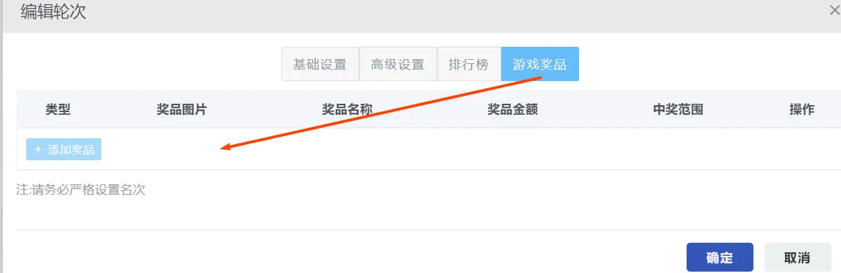 默认所有游戏都是不显示奖品的,是结束后排名显示成绩如需要手机端中奖者显示奖品,按如下图示设置首先需要设置是否允许重复中奖,就是上一轮获奖的能不能参与下一轮 按图示设置 然后找到使用的游戏,以动感摇一摇为例,点轮次管理,箭头方向编辑每一轮里面的奖品 设置好后,大屏也只是显示成绩,但是中奖的 手机会有奖品提示如图 大屏轮次结束后 点排名 弹出列表显示作者:哲蓝科技 创建时间:2024-10-18 22:41最后编辑:哲蓝科技 更新时间:2025-11-07 15:49