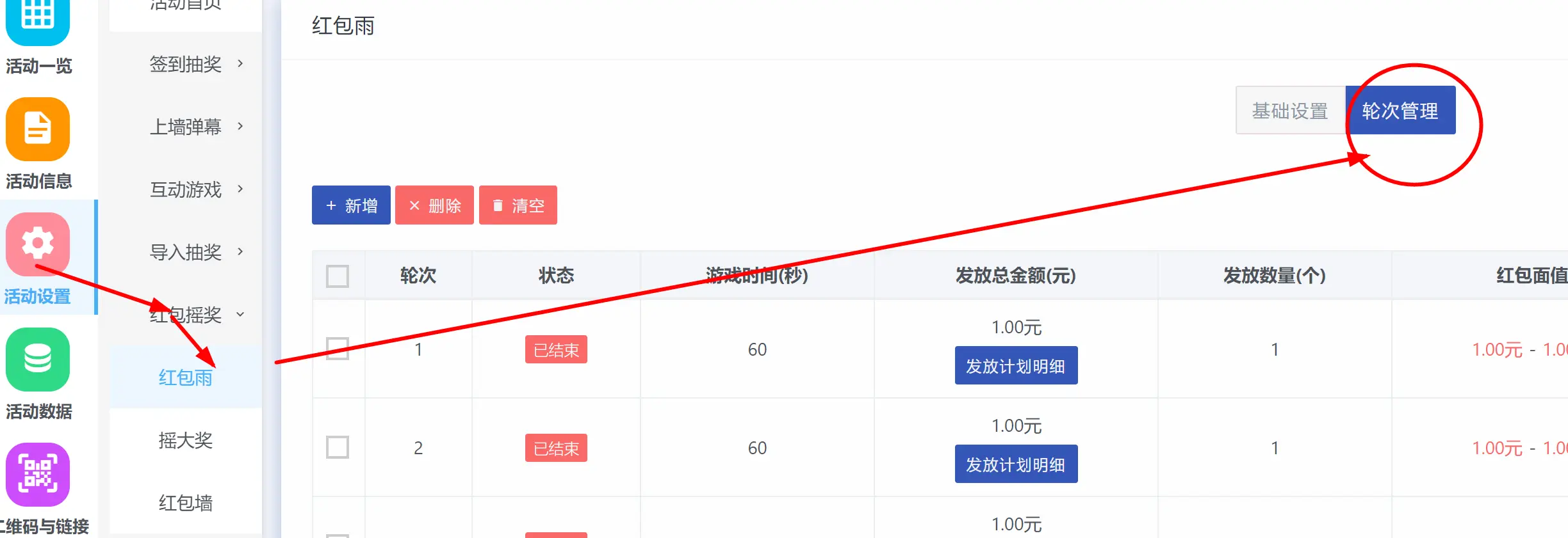 3 、红包发放注意,发放后数据里面都看到 发放结果的 ,如果出现:“用户微信没实名无法发放”或者 “同一个微信号一天内收我们系统红包超过30个限额” 就不能收到, 添加红包轮次数量注意了,一个人收红包1天不建议设置超过10个。这是微信商户限制的。