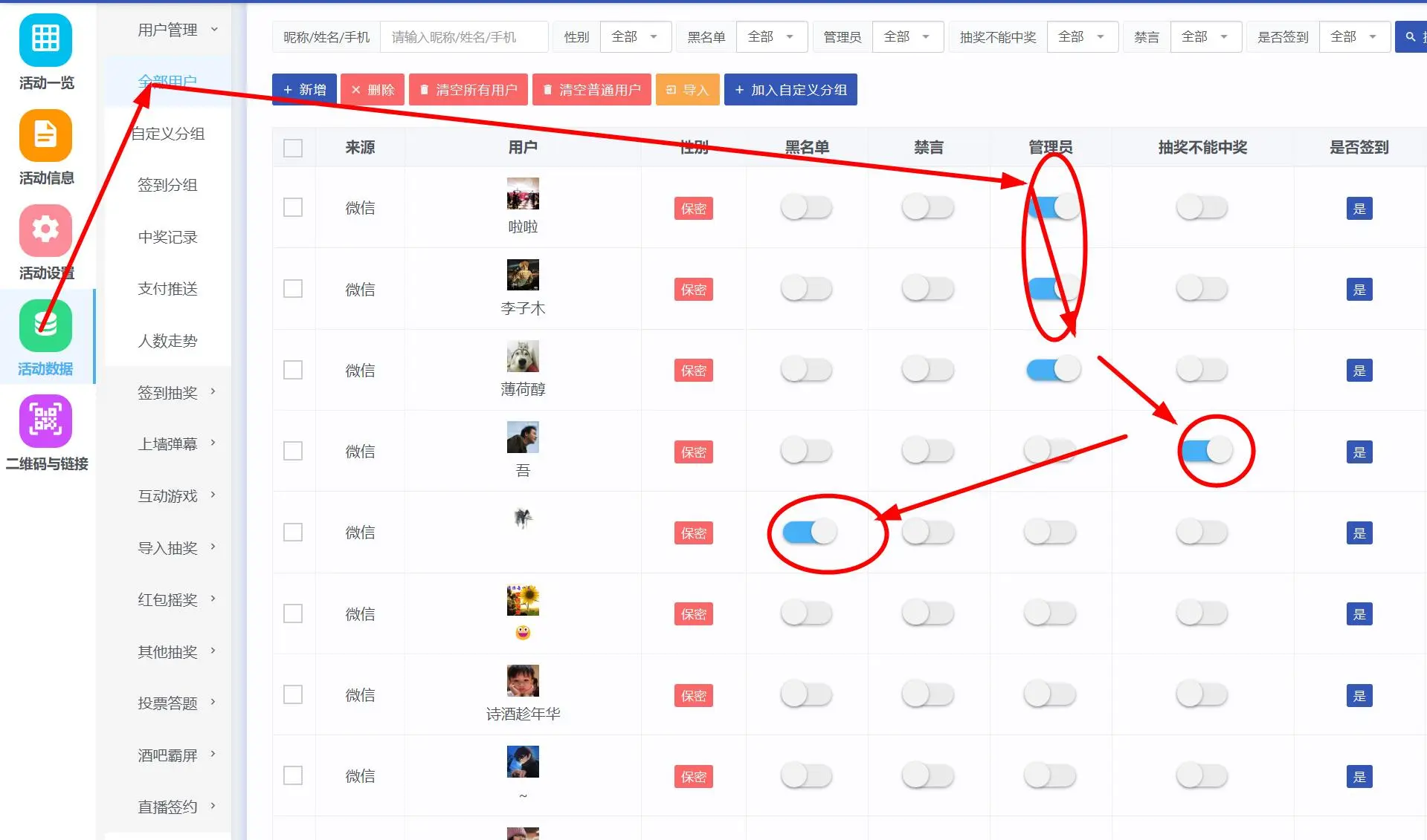 3、不能中奖,就是允许参与,但是所有扫码抽奖功能这个人都无法中奖。
