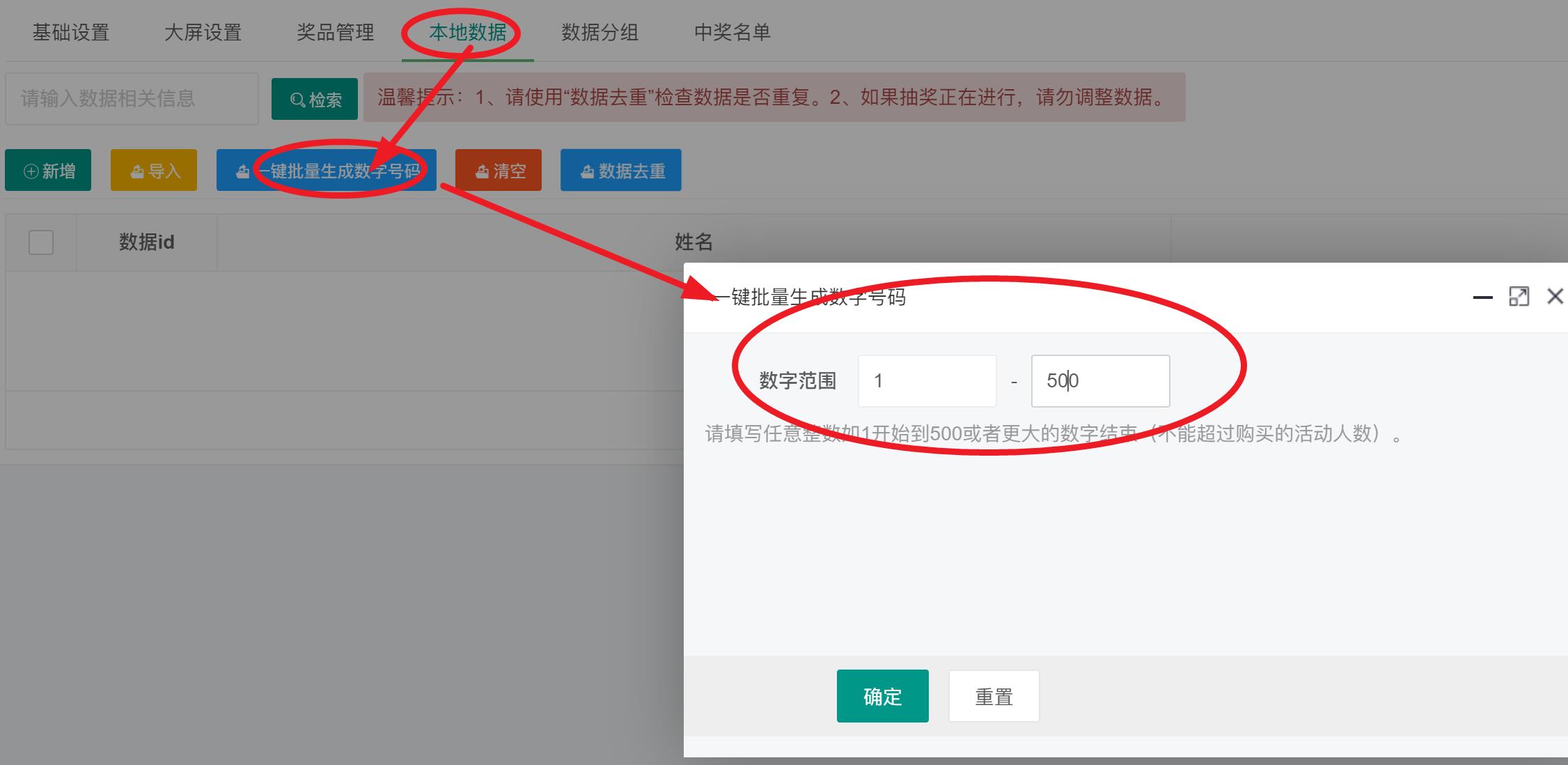 如果你需要抽数字,这里提供了自动生成数字功能,点一下一键生成即可,这样数字就有了,不再需要导入表格。