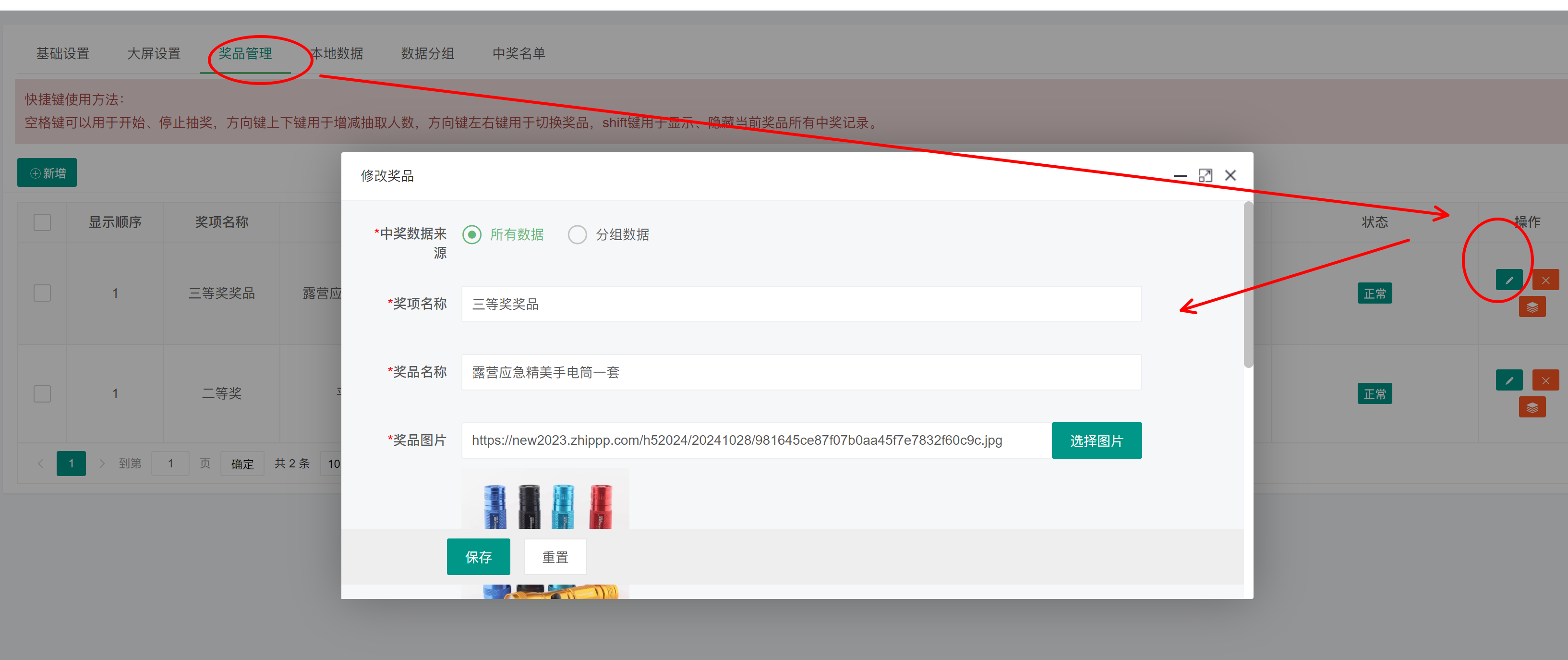 默认是抽所有导入的数据,如果要设置单独奖品分组才能抽的,需要编辑一下,勾选分组内容。