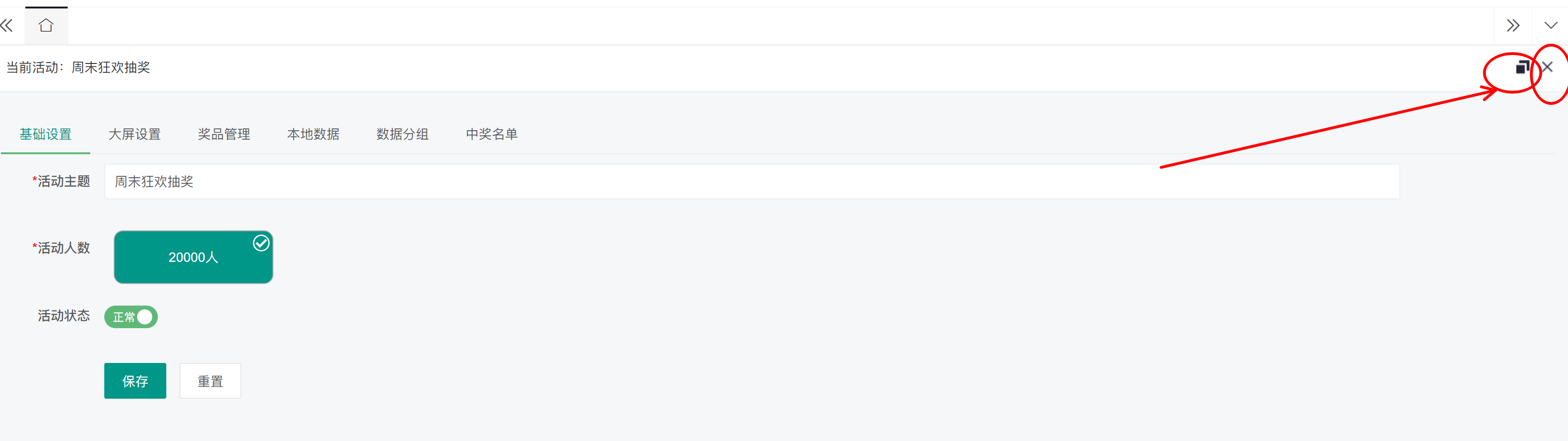 最后点击 设置按钮就可以进入设置大屏端和奖品名单这些,这里打开大屏网址点击打开大屏下面的图标即可。