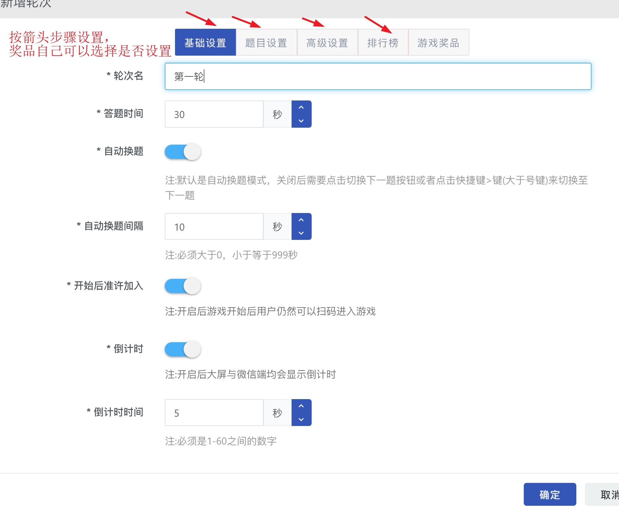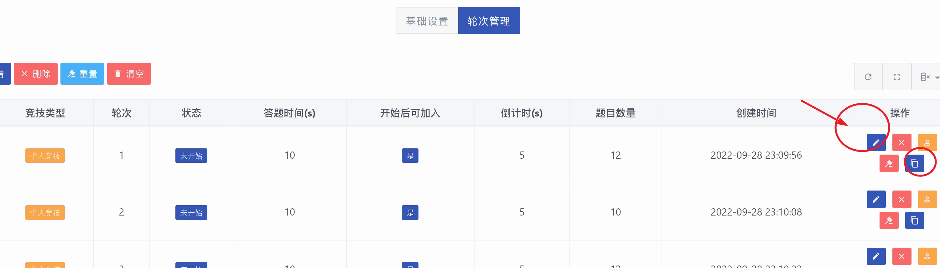创建完成,我们可以再修改编辑里面内容,如果每一轮题目都一样,那么我们使用复制轮次就可以了,无需每一轮都去创建一样题目。